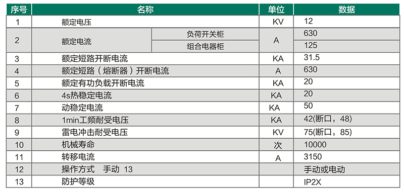 四、君源电力高压柜开关柜技术参数:
